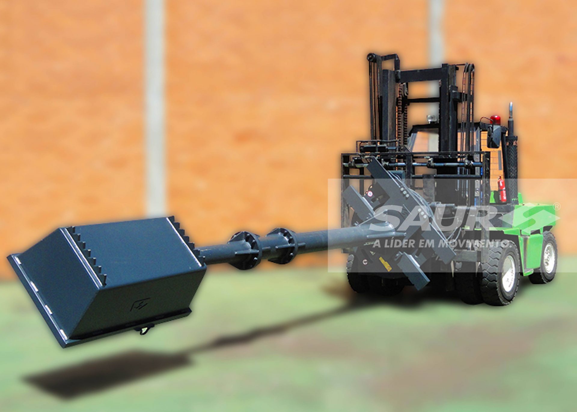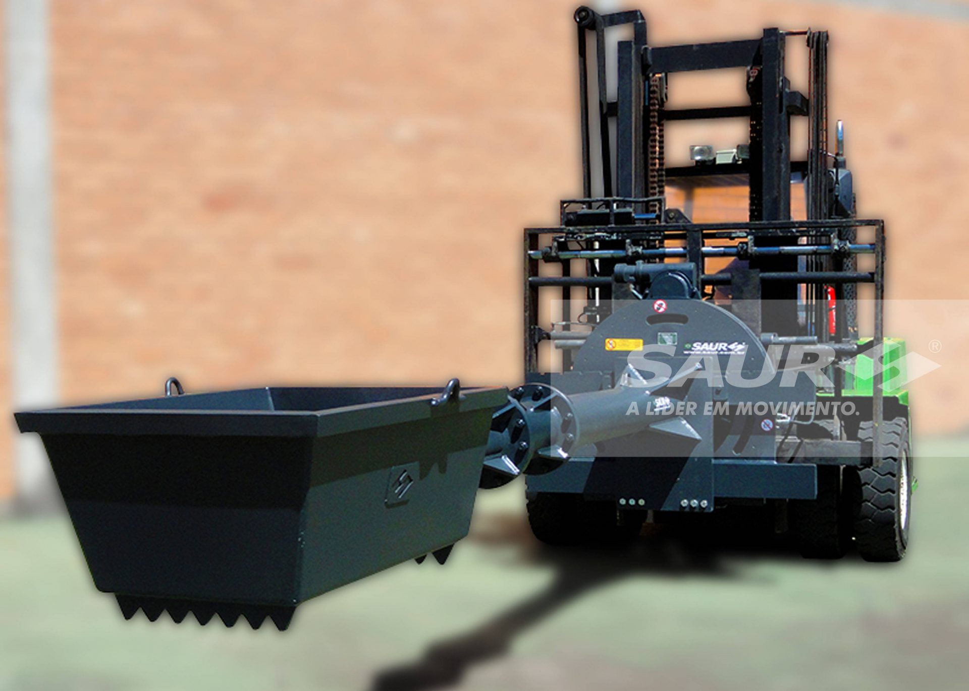 Haste equipada com caçamba para transporte e descarregamento dos materiais.