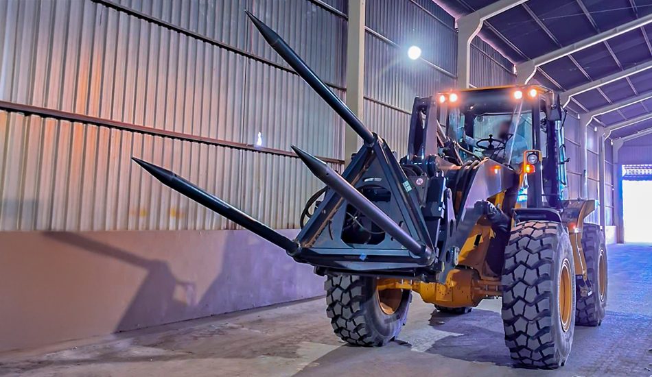 Facilita a movimentação e posicionamento de fardos, agilizando processos logísticos.