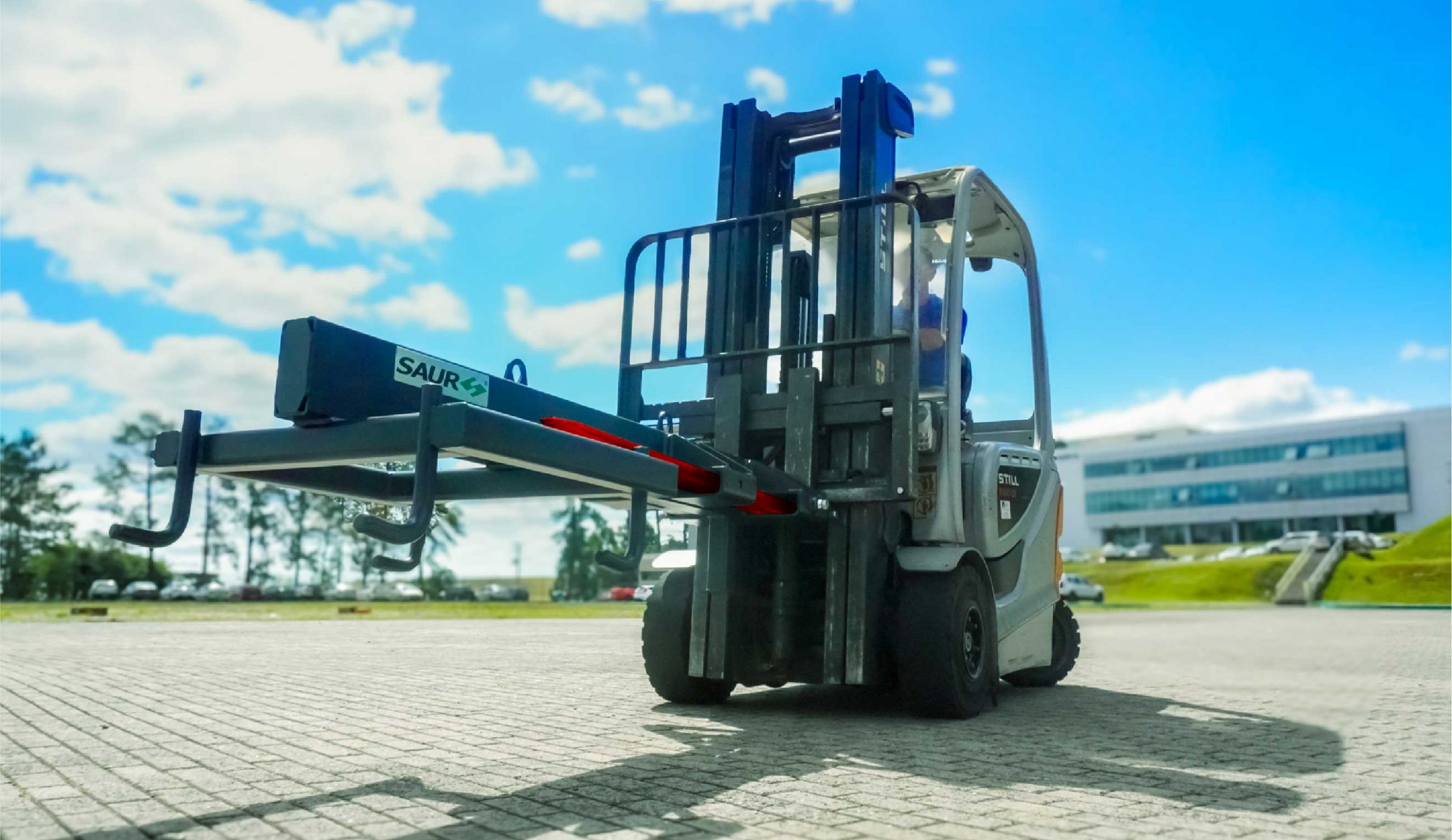 Instalação simplificada em empilhadeiras ou carregadeiras, com opções para deslocamento lateral.