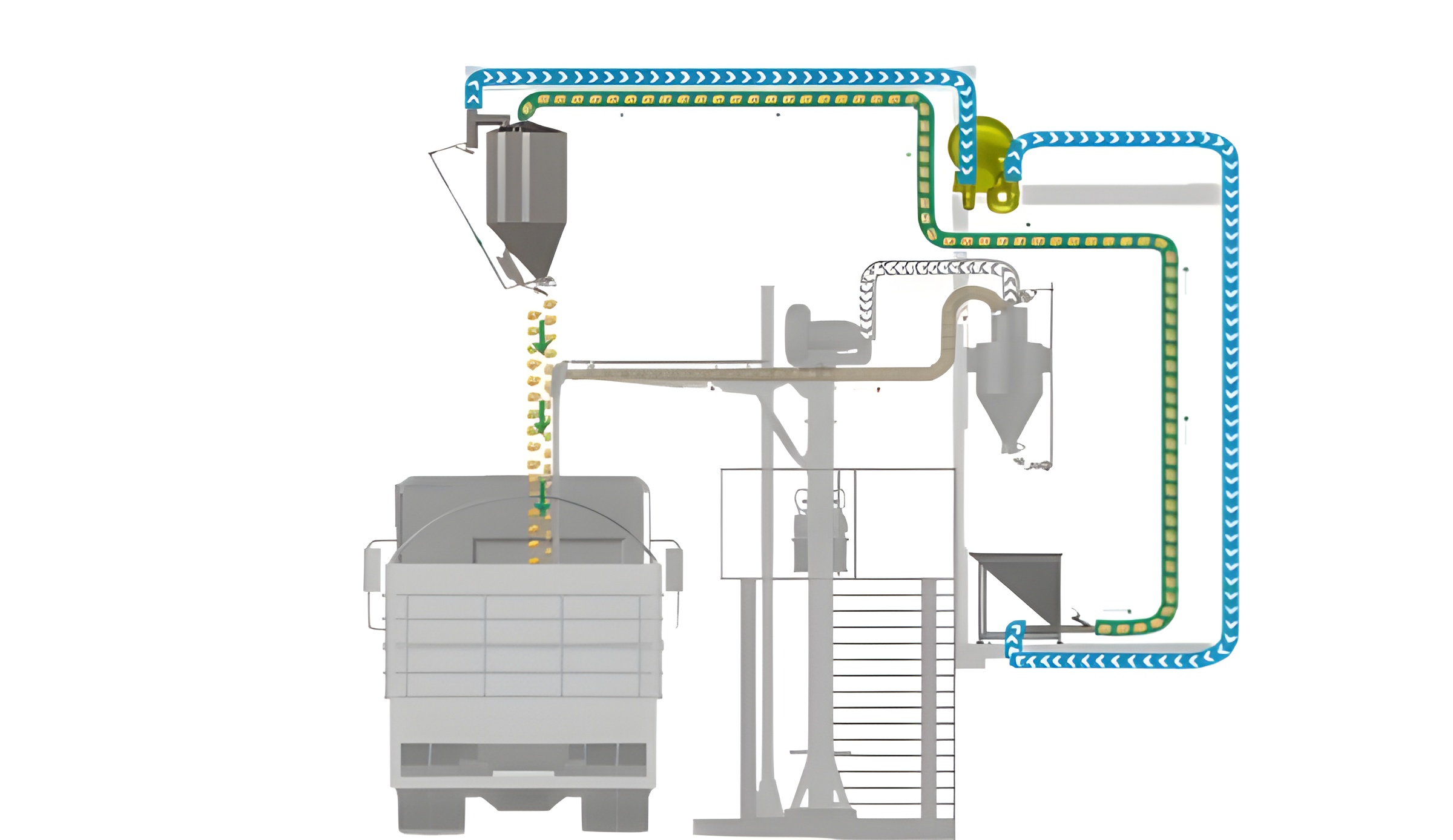 O sistema garante a devolução segura e rápida das amostras excedentes ao caminhão, sem interrupções na operação.